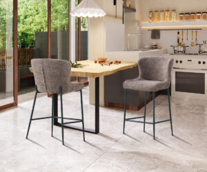 Chaise de comptoir ‘Lisa’ Bouclé Sable