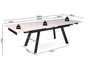 H 76 x L 160-240 x P 90 cm – Top 10 mm